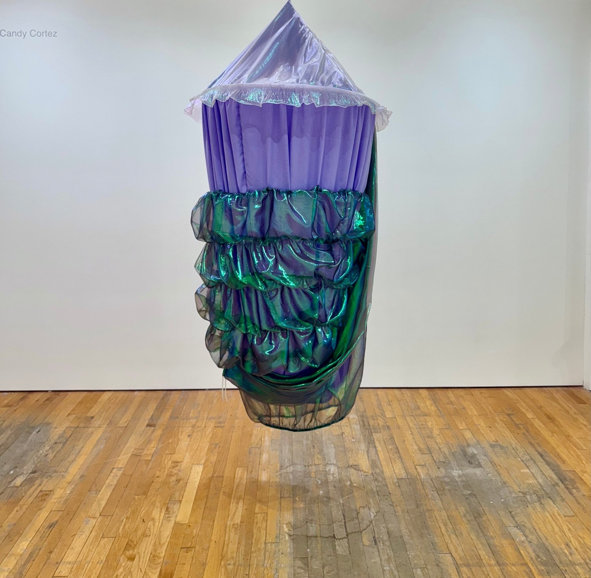 Growing Pains. 2025. Fabric, Plastic tubing, beads, and thread. 84”x30”x30”.